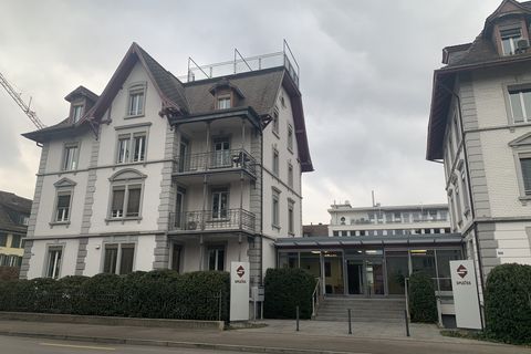 Die Liegenschaft erstreckt sich auf 1’747 m2 und besteht aus zwei einzelnen Gebäuden, welche mit einem einladenden Eingangsbereich miteinander verbunden sind. Das Mietobjekt überzeugt durch seine über 30 Einzelbüros und die direkt zugänglichen 36 Tiefgaragenplätze sowie Aussenabstellplätze. Das grosse, natürlich belichtete Untergeschoss auf ca. 300 m2 ist flexibel nutzbar und kann auch als Radiologie ausgestattet werden. Überzeugen Sie sich vom Objekt mit Hilfe des 3D-Rundgangs.