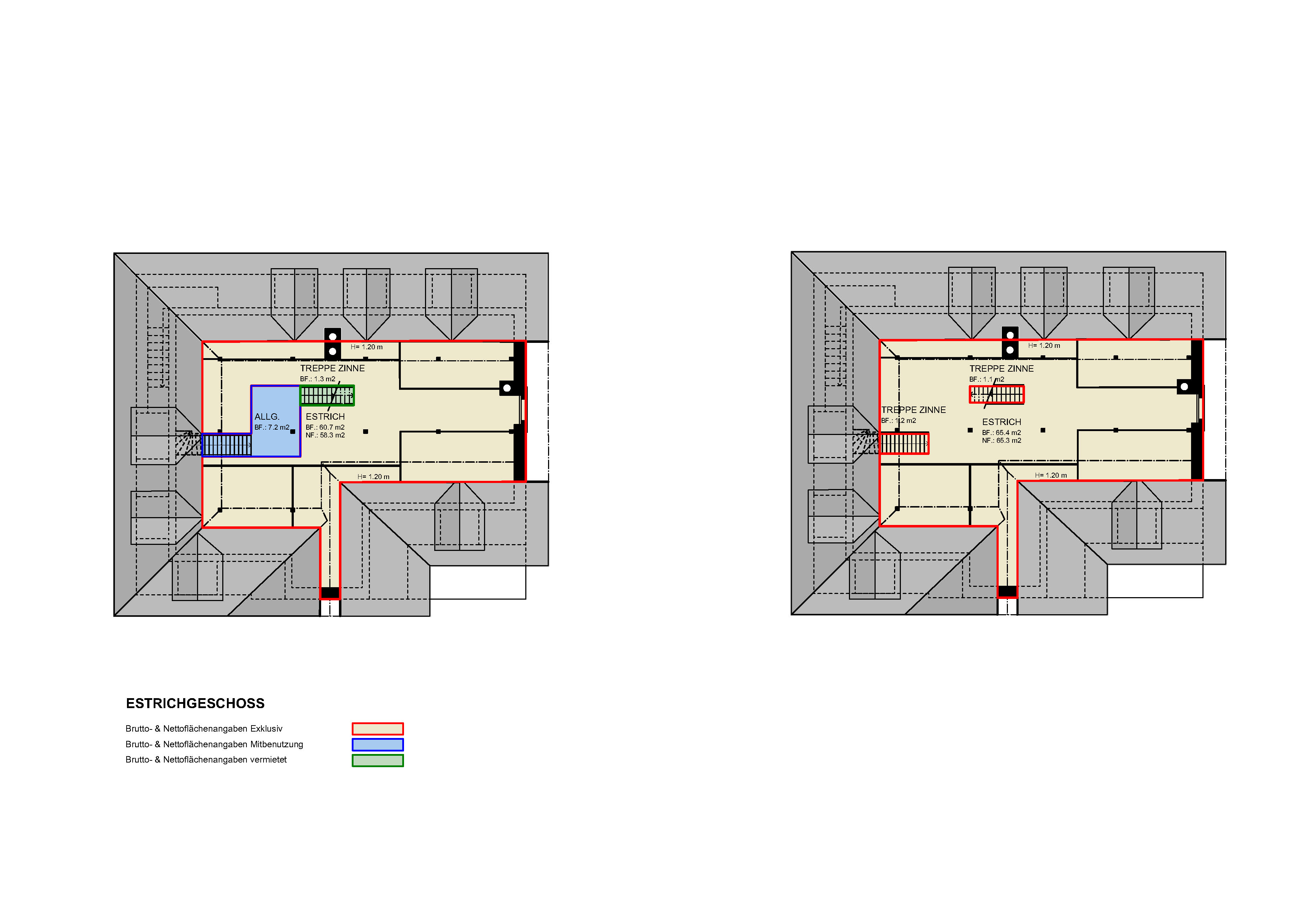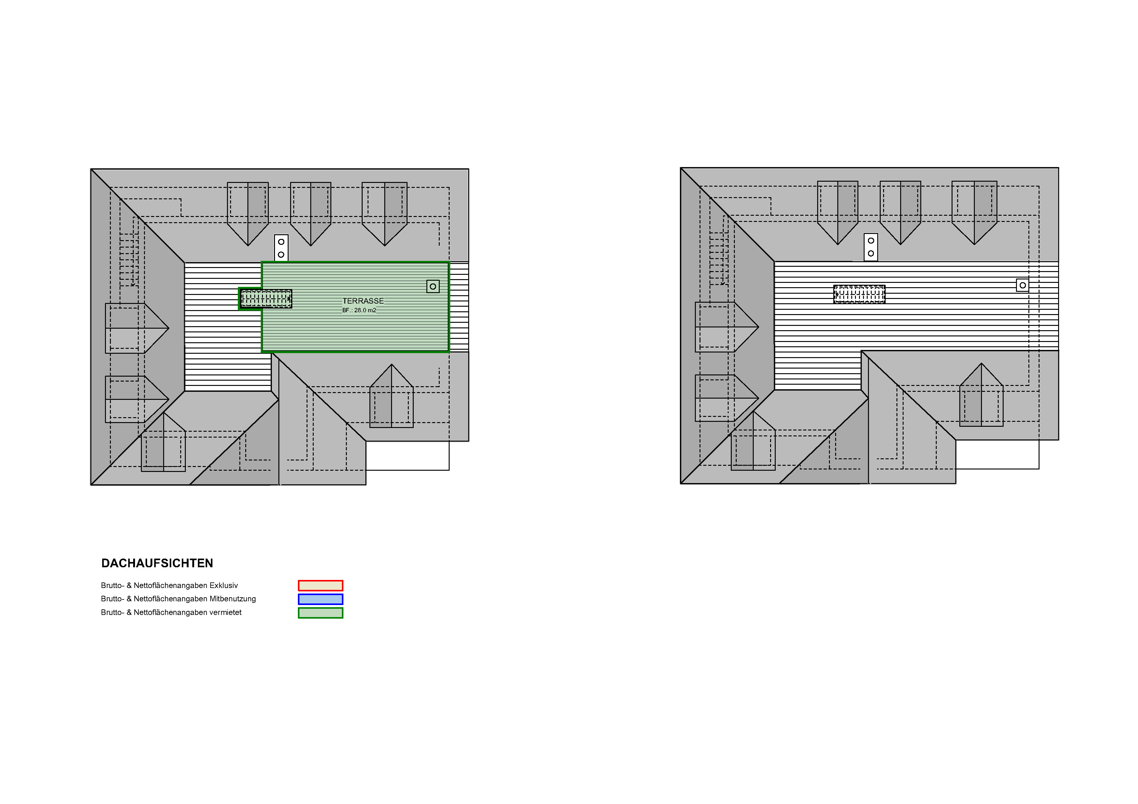 | Dachaufsichten: Terrasse | Vermietungsplan | |